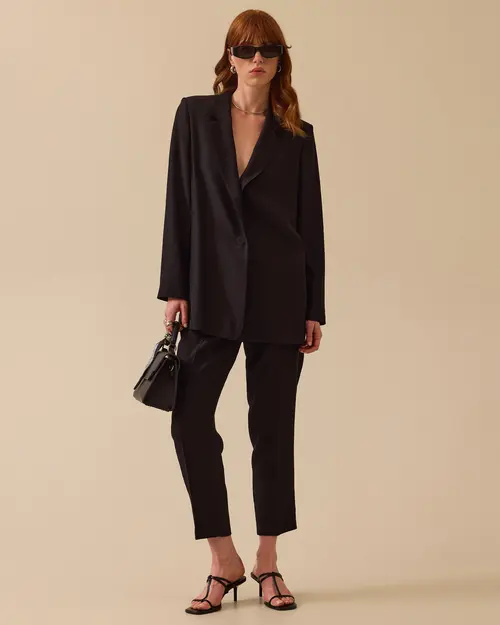 One Button Oversize Jacket adds a dynamic touch to both office style and daily combinations with its modern cut and comfortable structure.