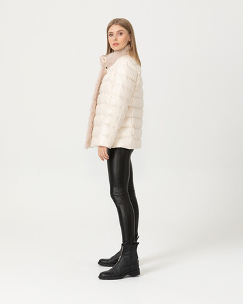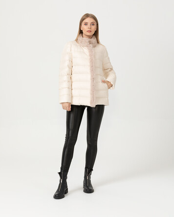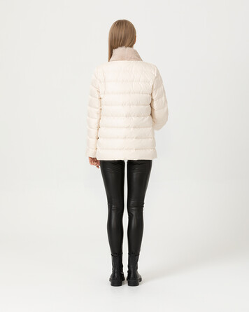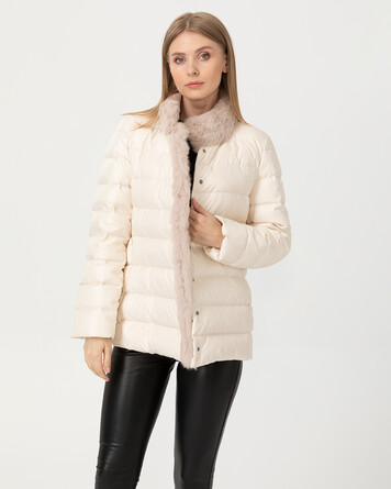 Gerçek Kürk Detaylı Kuş Tüyü Kaban