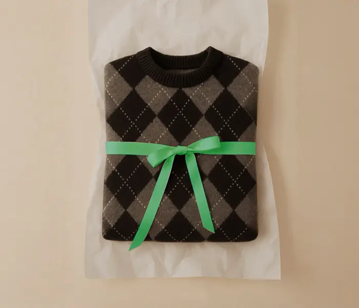 Şal Görünümlü Ekose Desenli Triko Hırka