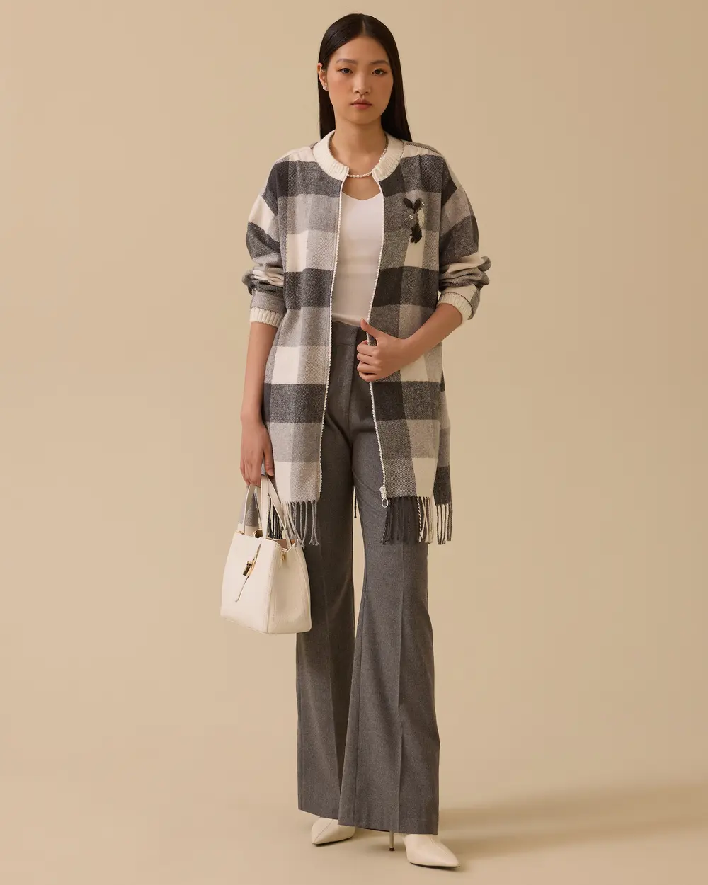- püsküllü kuşaklı ekose ceket