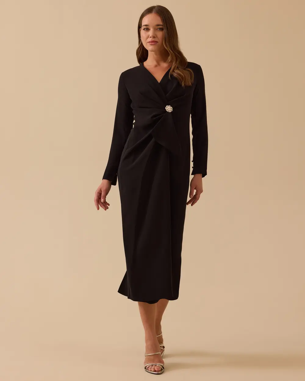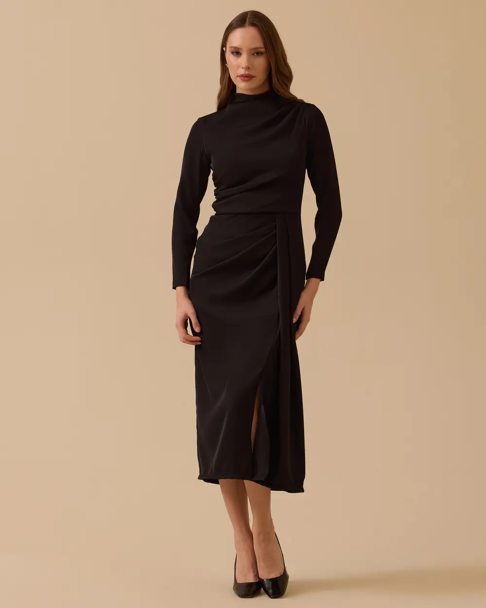 - nakış i̇şlemeli yırtmaçlı midi boy şık elbise