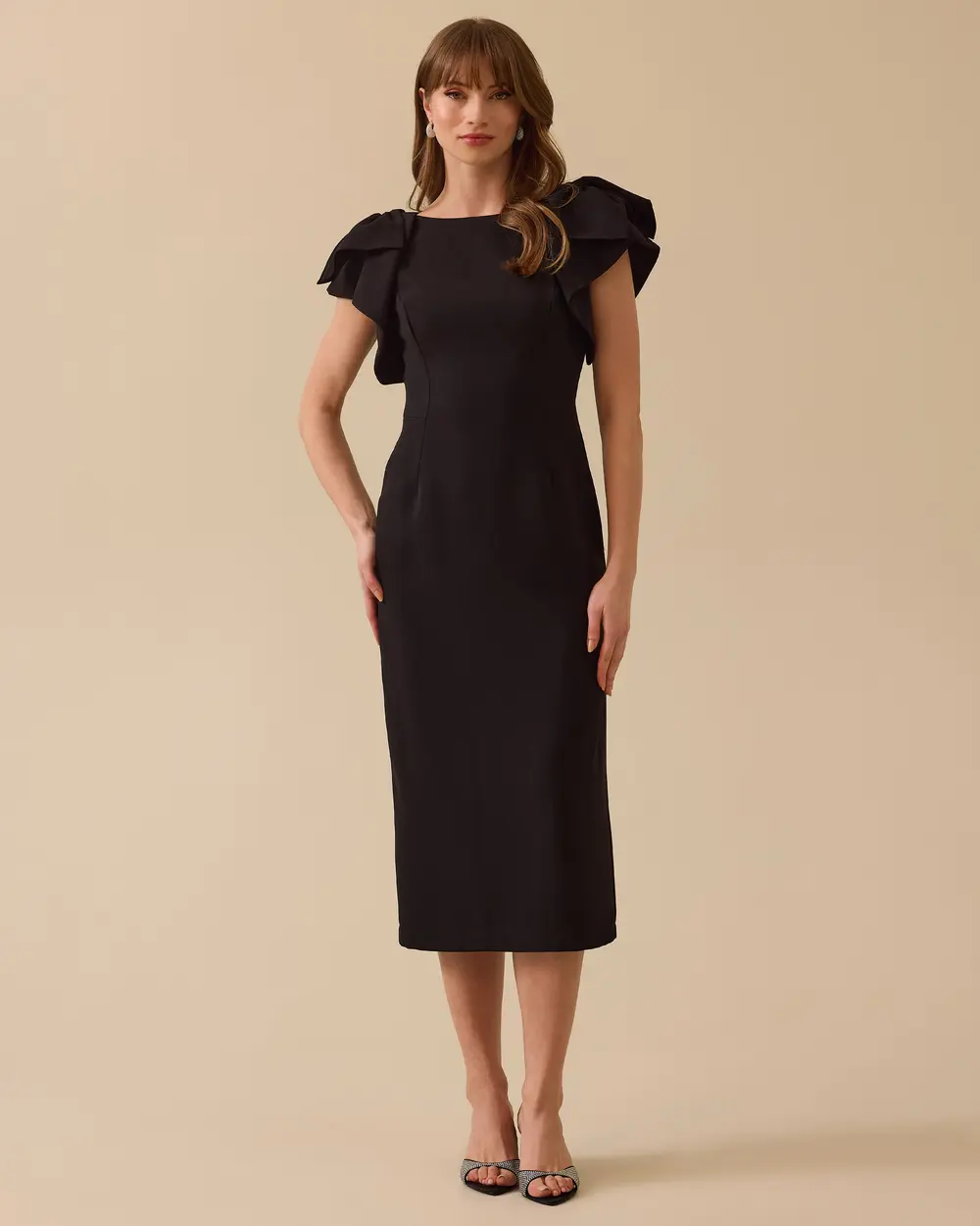 - çiçek desenli tafta kumaş midi boy şık elbise