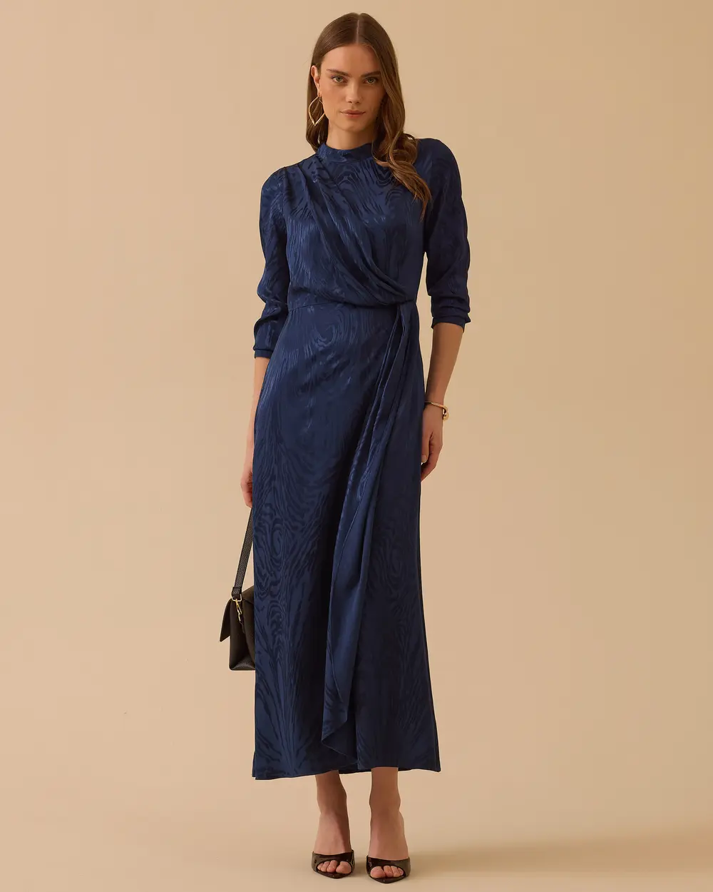 - desenli parlak dokulu uzun elbise