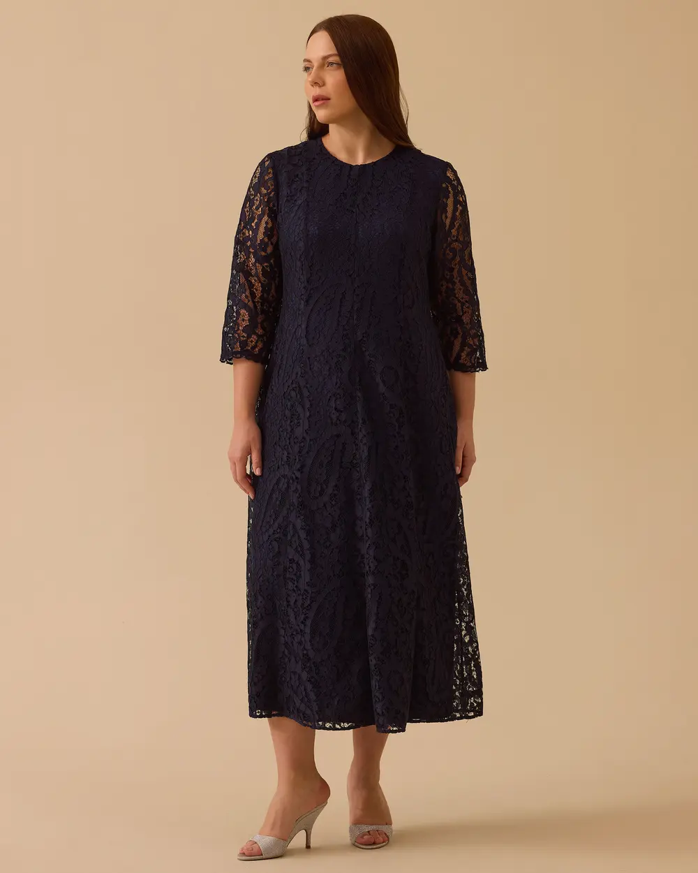 - büyük beden midi dantel elbise