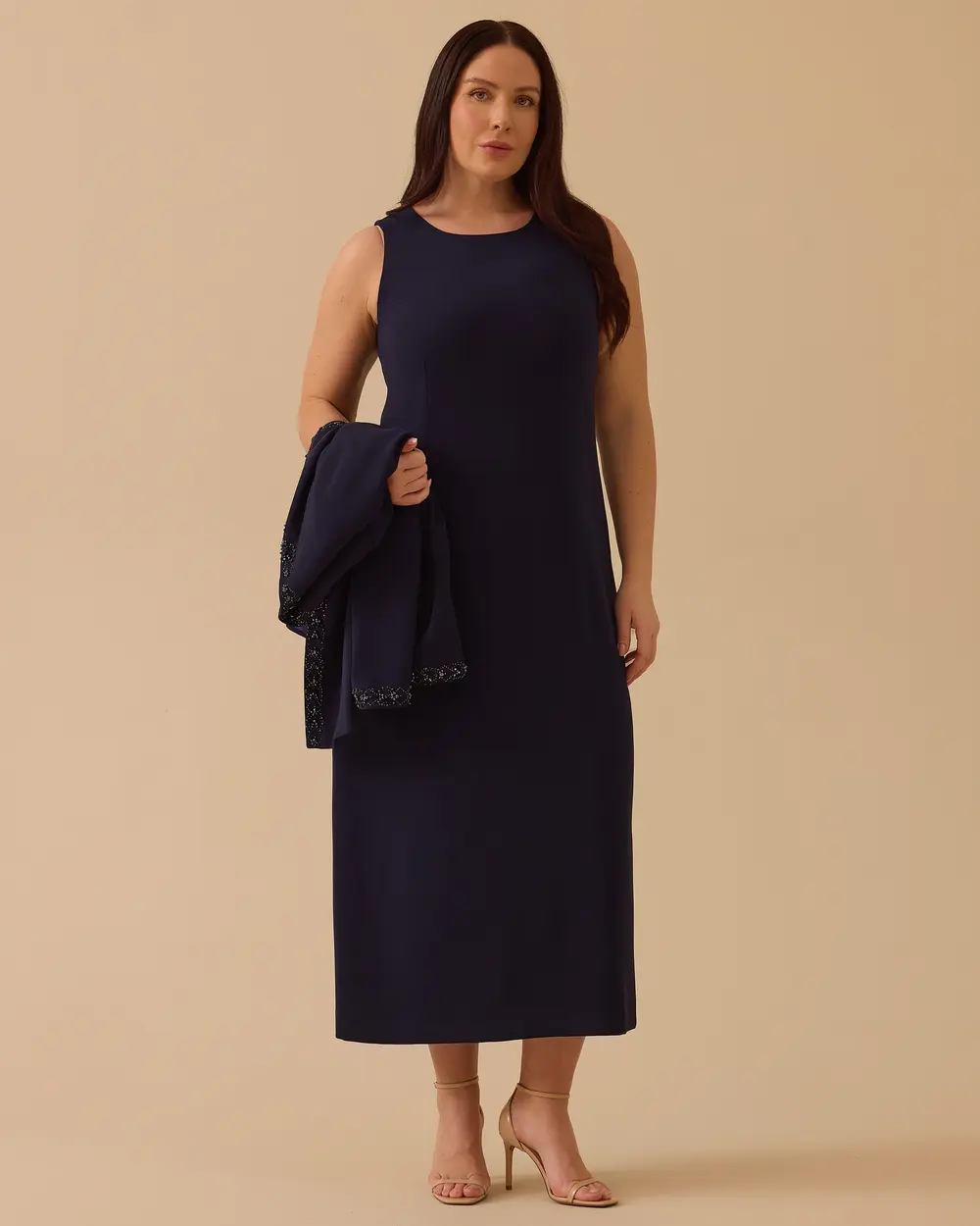 - büyük beden boncuk detaylı midi elbise