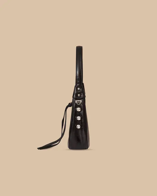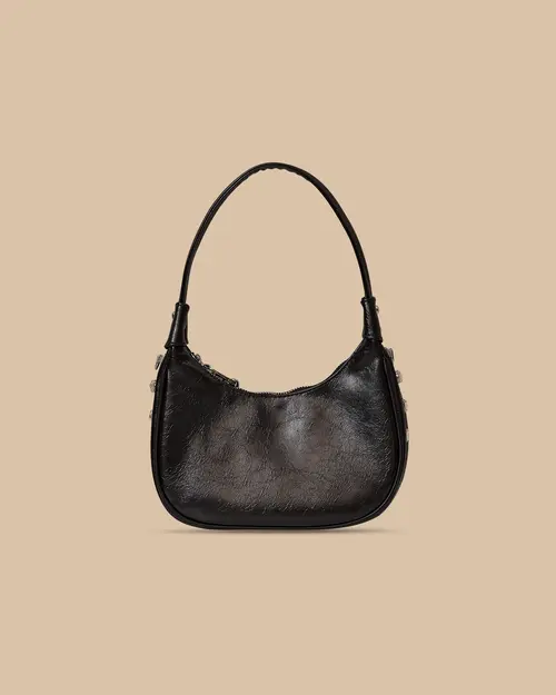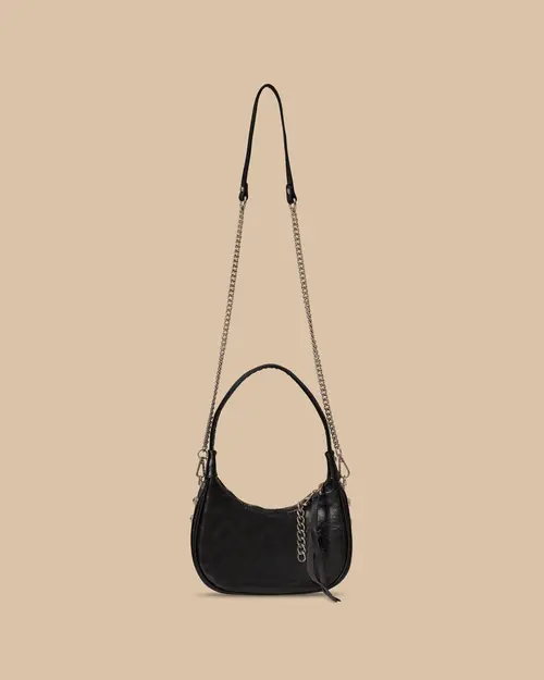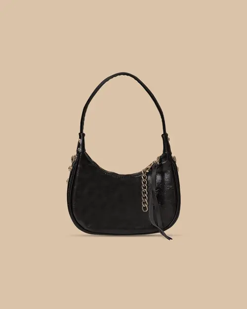 Faux Leather Shoulder Bag with Chain Strap adds an assertive touch to the city style with its modern form and metal detailed strap.