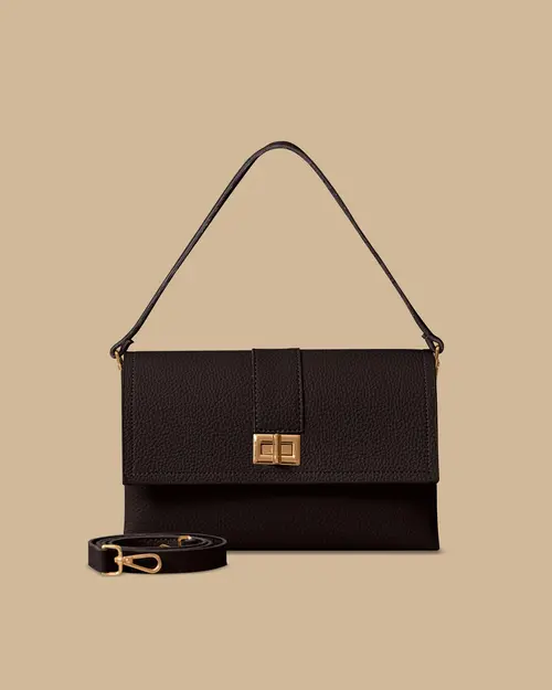 Gold Buckle Shoulder Bag provides daily elegance with its elegant design and useful compartments.