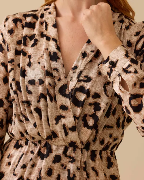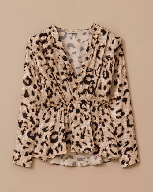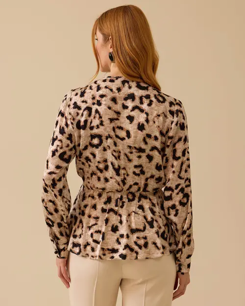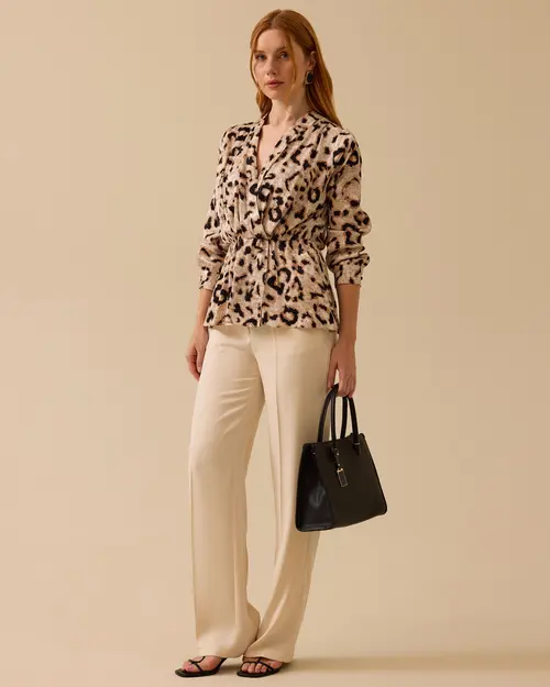 Double-breasted Collar Patterned Elastic Waist Blouse attracts attention with its patterned structure. It offers comfort all day long with its elastic waist.