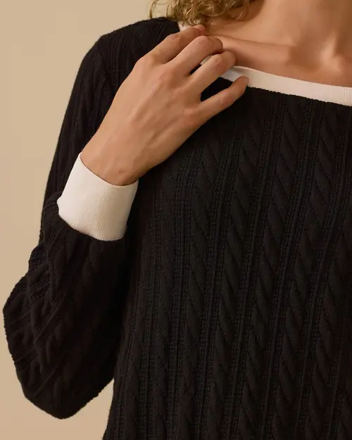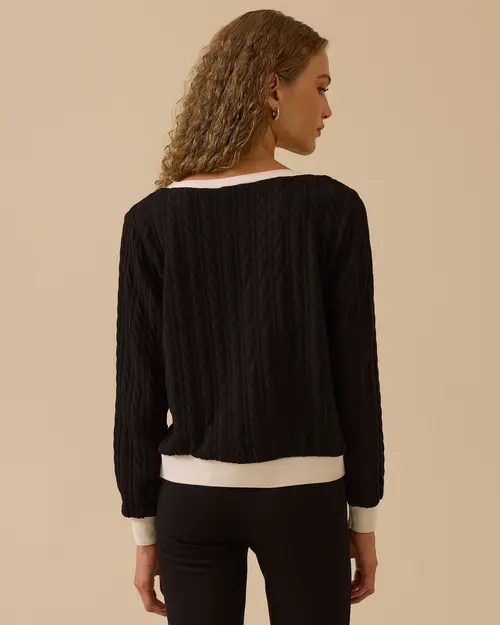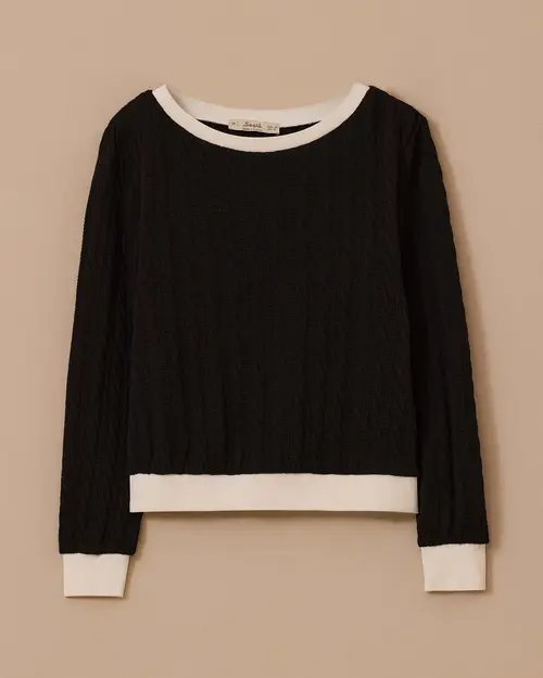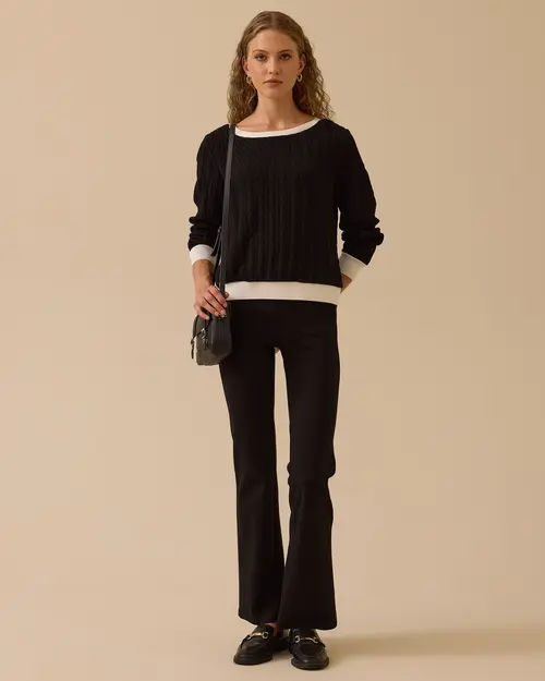 Round Neck Knit Patterned Blouse adds comfort to your daily elegance with its soft texture and elegant knit details.