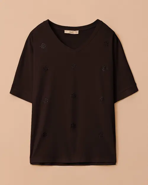 v neck stone detailed blouse