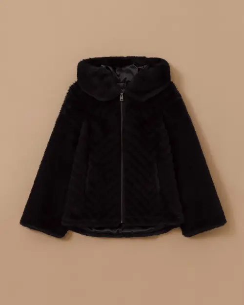 Zippered Faux Fur Coat offers a warm and stylish style with its soft faux fur texture and modern zipper detail.