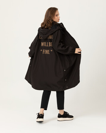 slogan detailed hooded trench coat