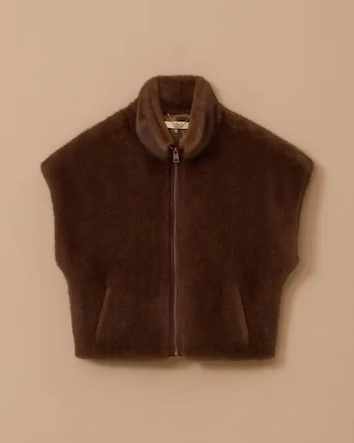stand collar zippered faux fur vest