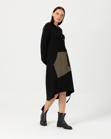 Spor ve şık detayların bir araya geldiği elbise, zamansız bir stili vurguluyor. Cepleri ile dikkat çeken elbise dinamik bir görünüm yaratıyor.