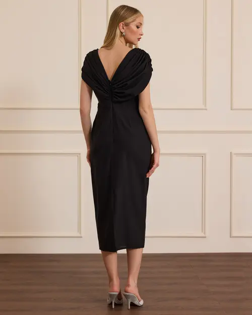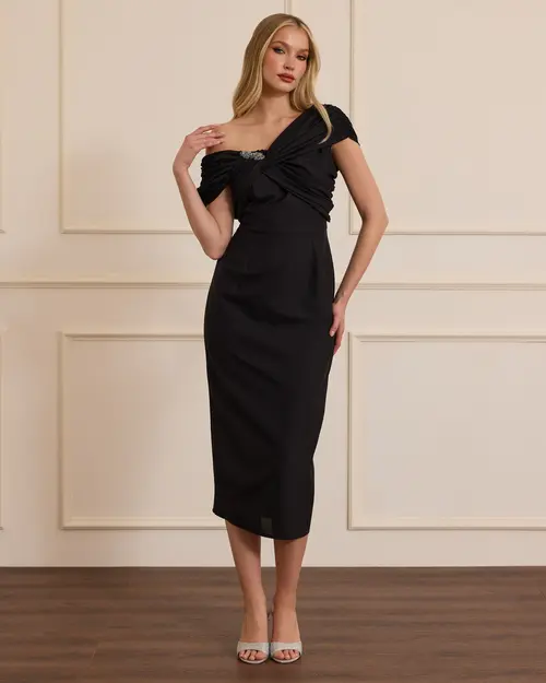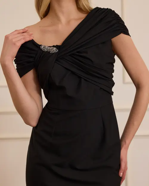 asymmetric collar elegant dress with stones