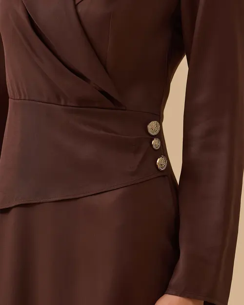 double-breasted satin dress with button detail
