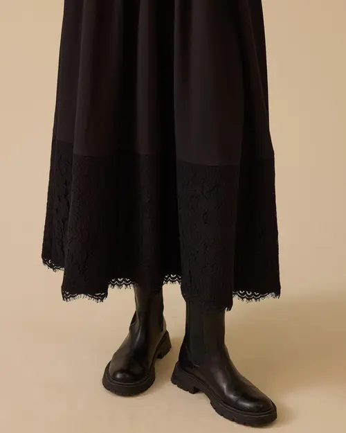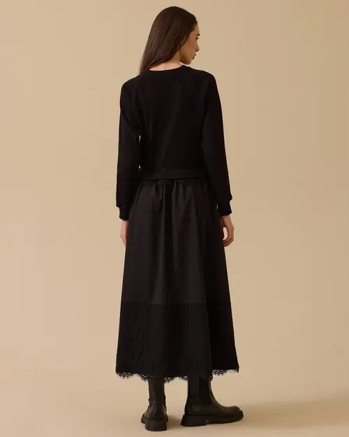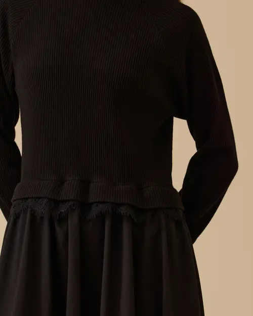 Lace Detailed Two Piece Look Dress offers a modern and elegant style with its knitwear top-like design and elegant lace detail on the hem.