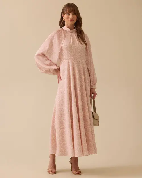 Patterned Bat Sleeve Dress provides all-day comfort with its modern design that offers elegance and comfort together.