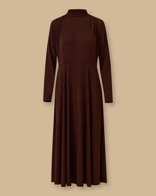 Shoulder Shirred Belt Flared Dress provides elegant movement with its flowing texture and flared skirt.
