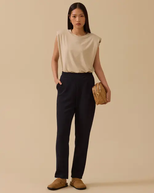 Elastic Waist Ankle Length Sweatpants offer freedom of movement with its elastic waist and ankle length design. It adds a comfortable touch to your daily style.
