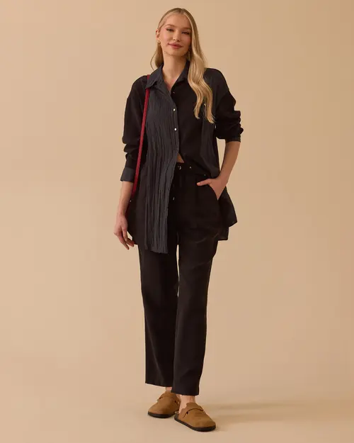 Lace-up Ankle Length Trousers offer comfortable elegance all day long with its adjustable waist detail and comfortable cut.