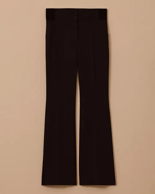 High Waist Flared Trousers with Double Button Detail offers elegance with its elegant cut.