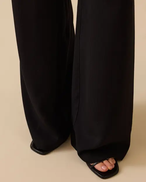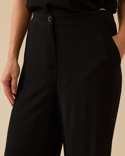 One Button Wide Leg Trousers offer a stylish look with its modern cut and simple design. It provides all-day comfort with its single-breasted structure and relaxed leg form.