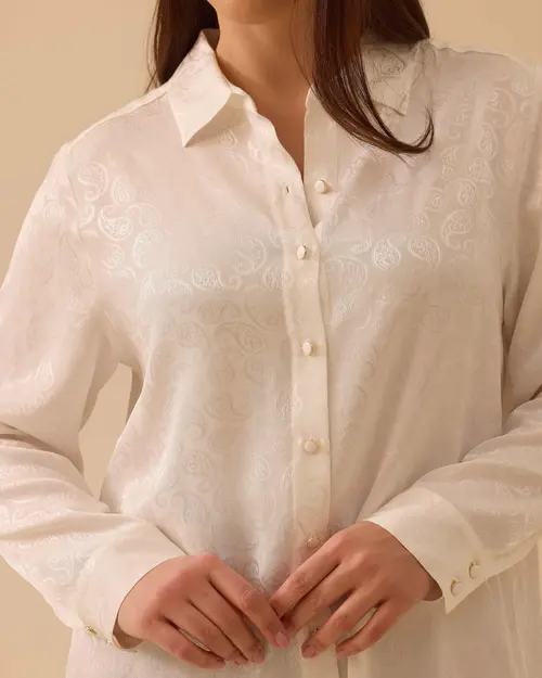 Plus size patterned jacquard shirt draws attention with its textured surface and provides a stylish touch to different combinations.