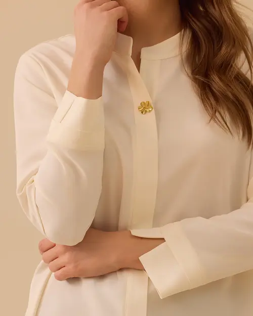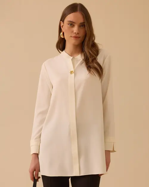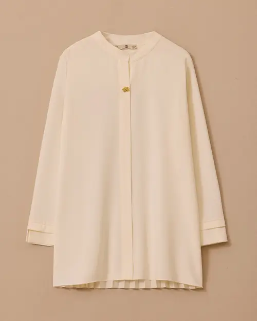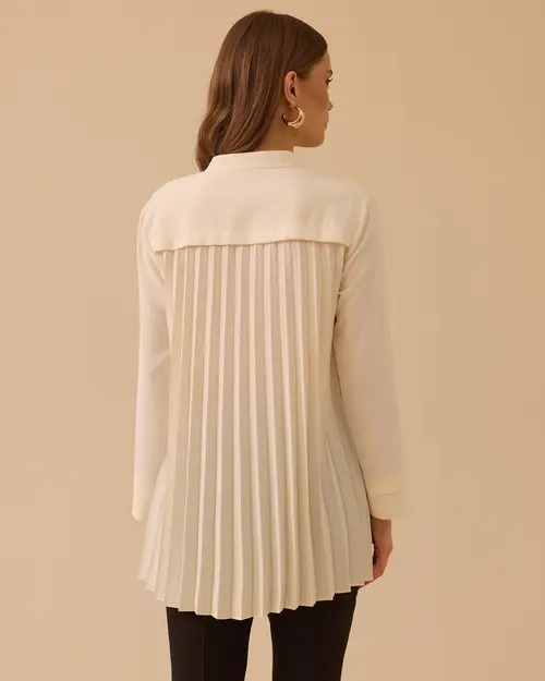 Back Pleated Judge Collar Shirt offers an elegant and modern style with its back pleat detail and simple cut.