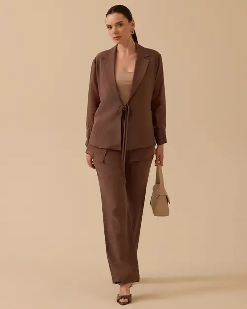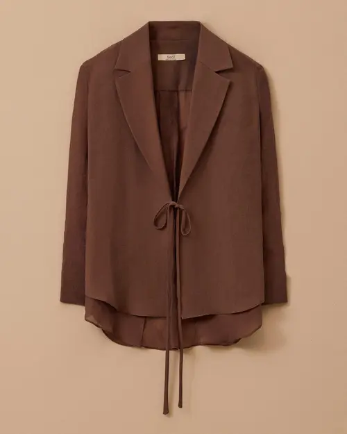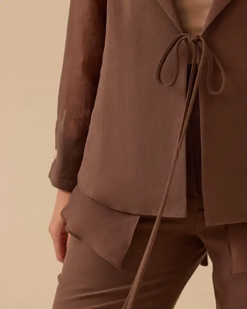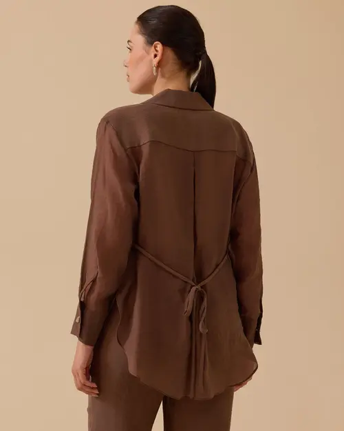 Double-breasted Linen Shirt with Tie Detail offers a modern stance with its comfortable cut and side tie detail.
