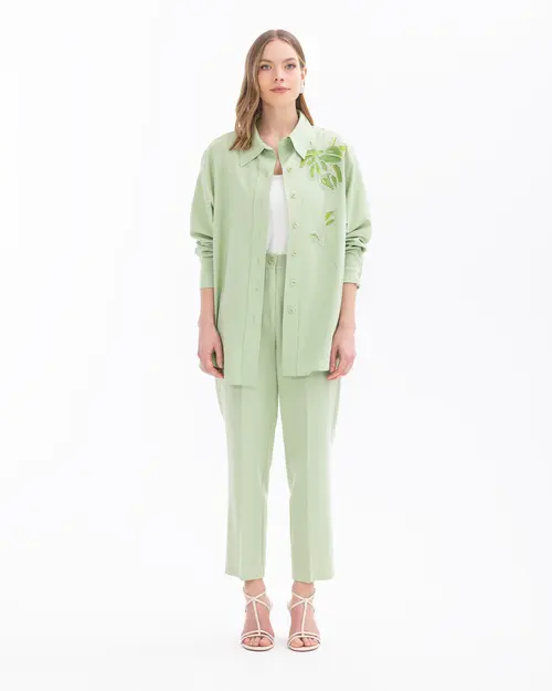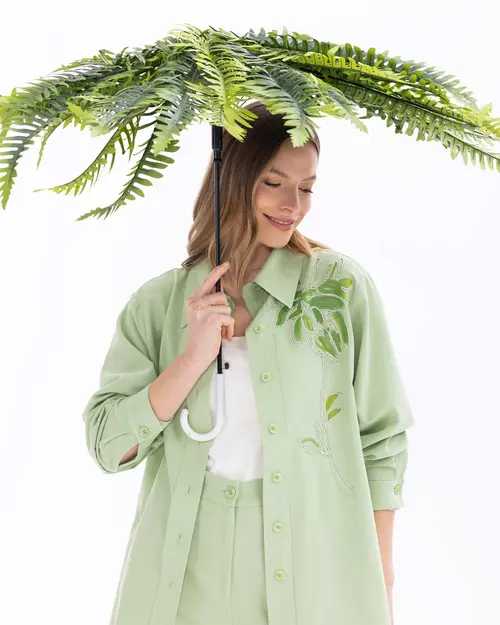 The shirt with embroidered pockets is a stylish option that attracts attention with its special details. It is suitable for daily use with jeans and for more formal events with fabric pants. When combining them, you can choose a suitable t-shirt or shirt underneath and complete your style with your choice of shoes. These shirts offer both elegance and functionality in your wardrobe.