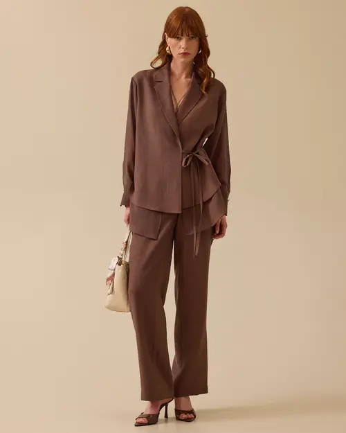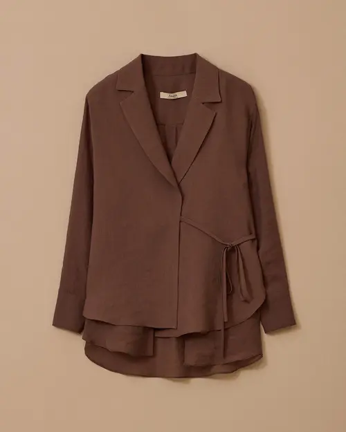 Linen Shirt with Tie Detail offers an elegant and stylish look. It provides comfort in daily wear with its light fabric and comfortable cut.