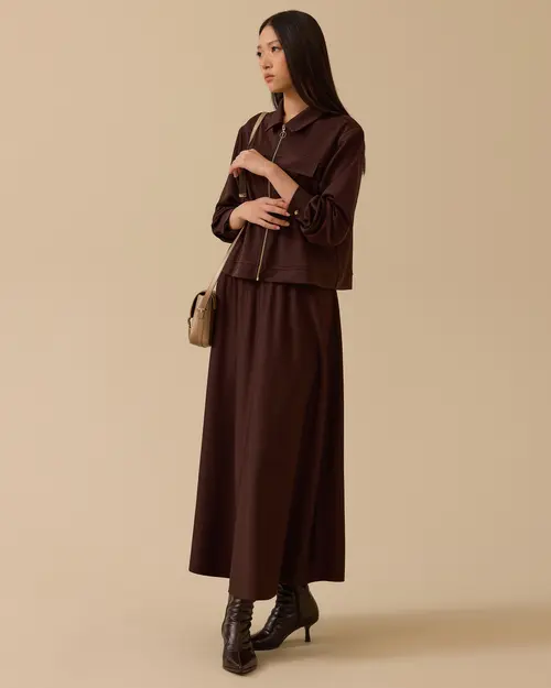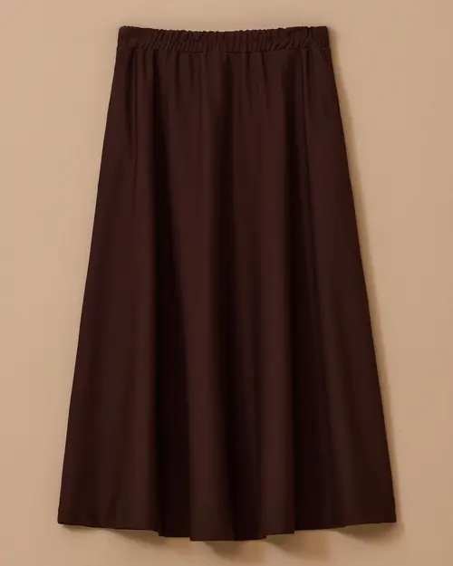 Elastic Waist Flared Skirt offers a comfortable, fluid and feminine look with its elastic waist and wide flared cut.