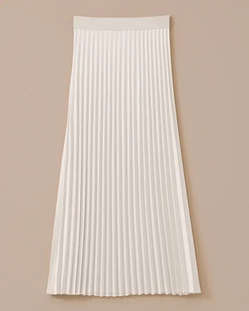 Elastic Waist Pleated Skirt offers comfort with its elastic waist structure and is ideal for both casual and elegant outfits with its fluid pleated design and long cut.