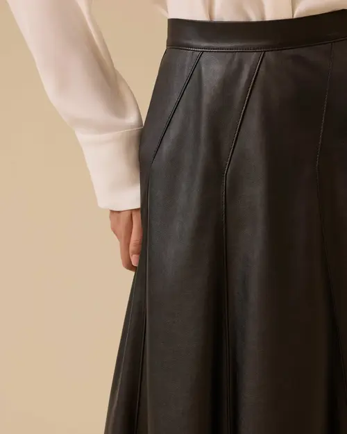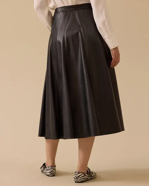 Faux Leather Flared Skirt adds a stylish touch to your style with its modern cut and dynamic form.