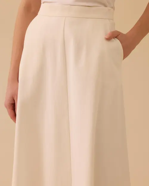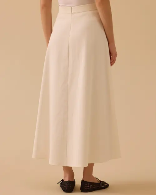 Flared Long Skirt with Pockets offers both a comfortable and stylish style with its relaxed cut and useful pockets.
