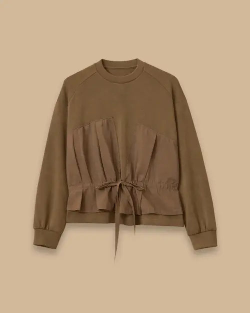 Double Fabric Lace-up Sweatshirt offers a comfortable and stylish look with its modern double fabric design and lace-up detail.