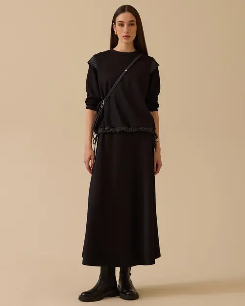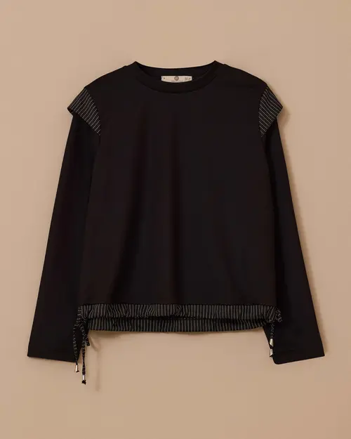 Line Detailed Lace-up Sweatshirt offers a modern and stylish look with its fine line details on the shoulder and hem.