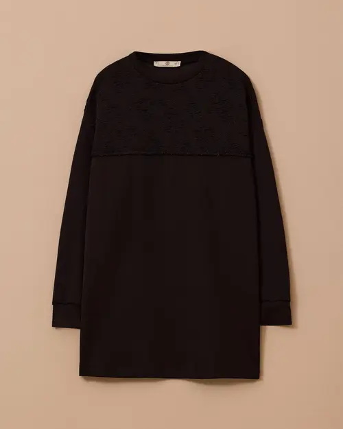 Glitter Detailed Long Sweatshirt combines elegance and comfort with sparkling glitter details.