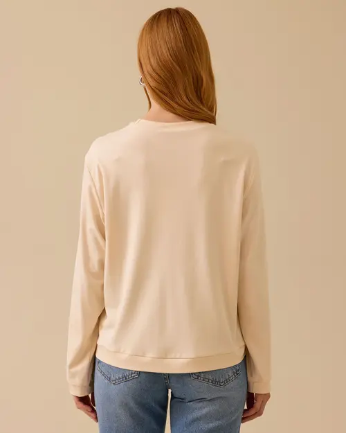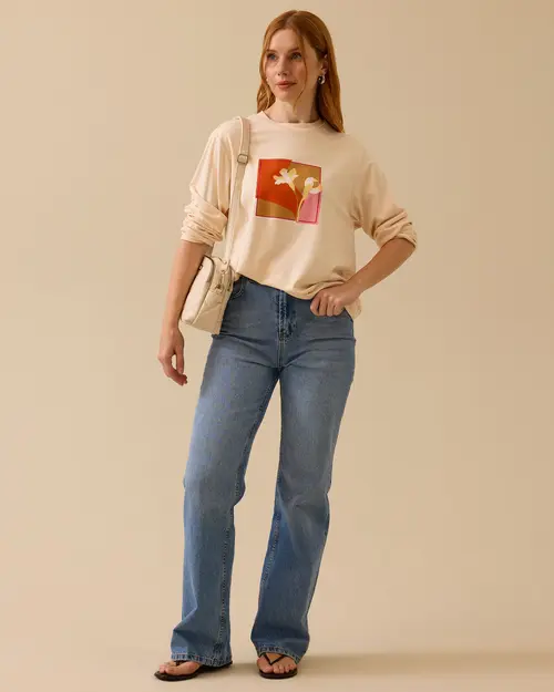 Printed Round Neck Sweatshirt attracts attention with its soft texture and energetic print. It offers a comfortable style with its relaxed fit.