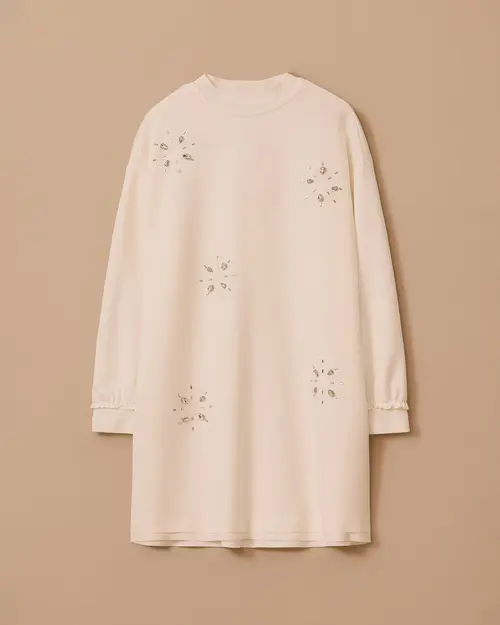 Round Neck Sweatshirt with Stone Detail offers daily elegance with its modern design and comfortable fit.