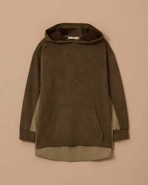 Suede Sweatshirt with Striped Back Detail offers a modern and comfortable style with its soft texture and back line detail.