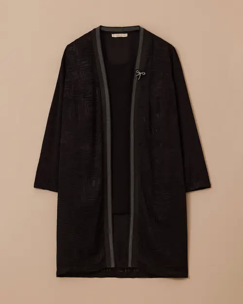 Plus Size Patterned Cardigan Suit combines elegance with comfort with its elegant pattern texture and comfortable cut.