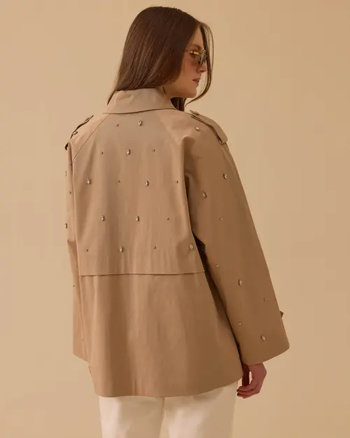 Oversize Trench Coat with Stones offers a remarkable, modern and powerful style with its oversized cut and stone details.