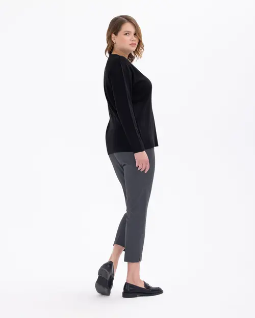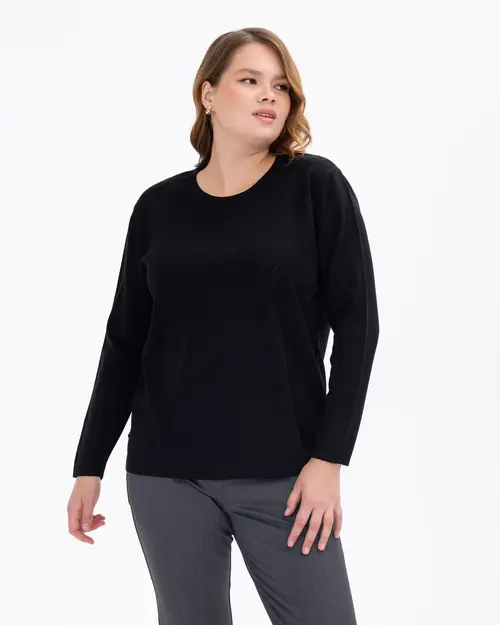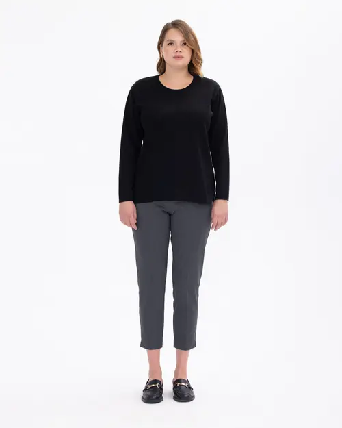 The Plus Size Round Neck Knit Blouse is both comfortable and stylish. Its round neckline offers a simple and elegant look. Thanks to its knit fabric, it's ideal for seasonal transitions. It complements every wardrobe. A perfect choice to feel special and comfortable!
