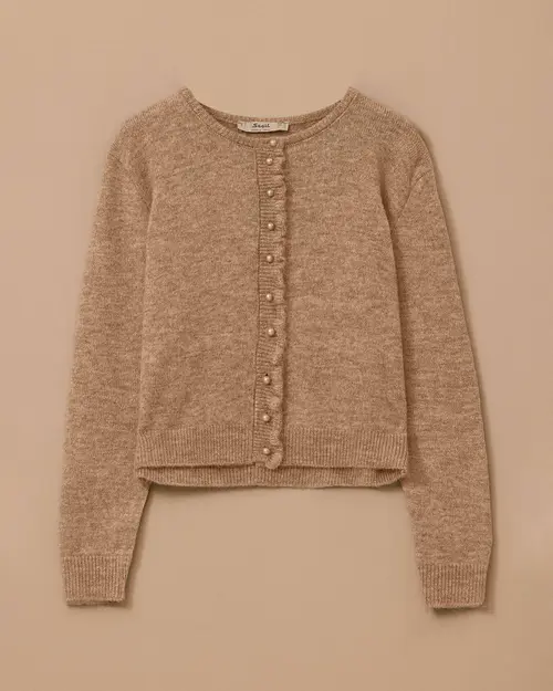 Buttoned Waist Length Sweater Cardigan, soft texture, button detail, suitable for daily wear.