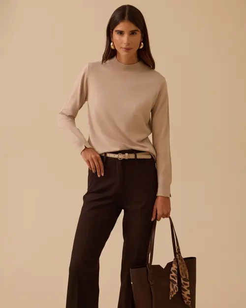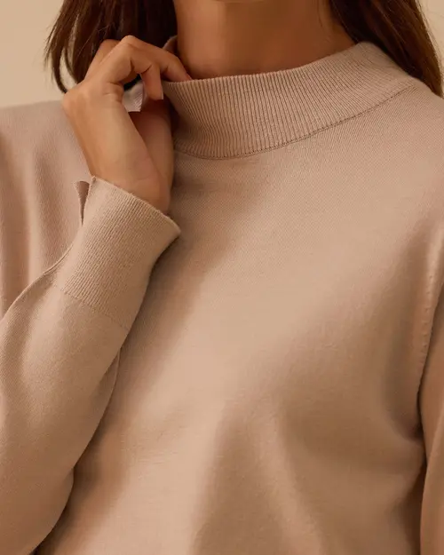 Half Turtleneck Basic Sweater Blouse is indispensable for daily combinations with its comfortable design.
