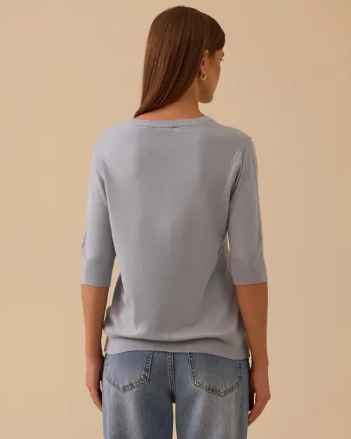 Short Sleeve Basic Sweater Blouse adapts to every style with its light texture and minimalist design.