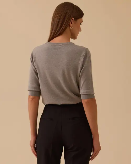 Short Sleeve Basic Sweater Blouse adapts to every style with its light texture and minimalist design.