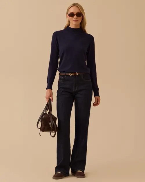 Yarım Balıkçı Yaka Basic Triko Bluz, rahat tasarımıyla günlük kombinlerin vazgeçilmezi.